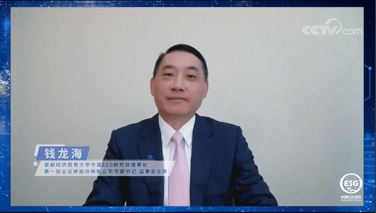 首都经济贸易大学中国ESG研究院理事长,第一创业党委书记、监事会主席钱龙海做主旨演讲。他认为,ESG是关注企业非财务绩效的评价体系,是企业可持续发展的核心框架。ESG是一个生态系统,是用市场化的方法,推动企业践行可持续发展理念的系统方法论。ESG生态系统的运行离不开信息披露、评价、投资决策等重要环节,需要企业、投资者、监管机构、第三方服务机构等共同发力。