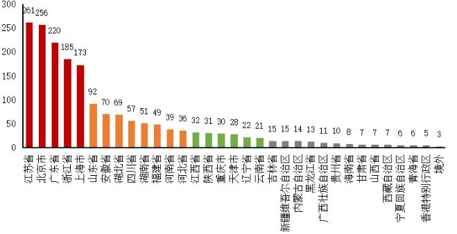 前5省市占比63%,前10省市占比82%。大体可以分为四档,第一档,是北京、上海、浙江、江苏、广东,合计占比63%,单省市占比在10%以上;第二档山东、安徽、湖北省、四川省、湖南省、福建省、河南省、河北省,绿色项目在35-100个之间,合计占比27%,单省市占比2%以上;第三档为江西省、陕西省、重庆市、天津市、辽宁省、云南省,绿色项目在20-35个之间,合计占比近10%,单省占比在1%以下。剩余13省市为第四档,单省市绿色项目在15个及以下,合计占比7%左右,单省市占比不足1%。