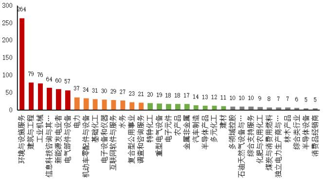 图3 按WIND四级行业分类划分绿色投资项目数量分布