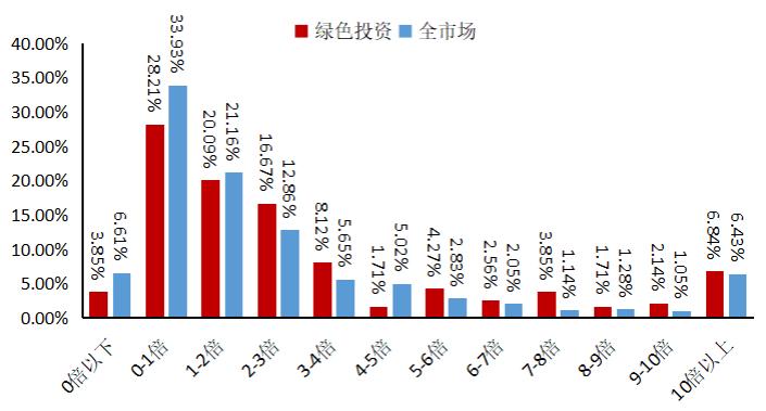图14 绿色投资与全市场非上市退出回报倍数分布比较