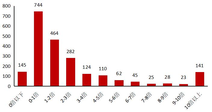 从退出回报情况来看,标明回报倍数的绿色投资事件平均回报倍数为2.20倍,中位数0.44倍。全市场平均回报倍数为2.99倍,中位数为0.49倍。分布情况如下: