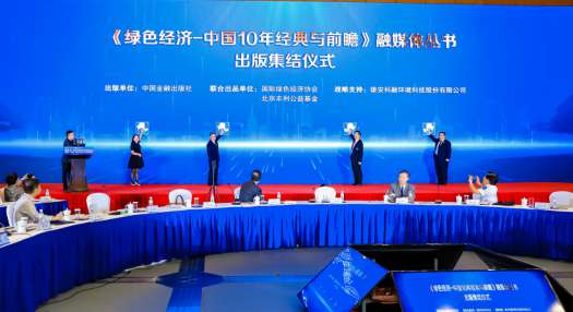 《绿色经济-中国10年经典与前瞻》丛书主编、联合国原副秘书长、国际绿色经济协会名誉会长沙祖康,丛书执行主编、中国金融出版社总编辑郭建伟与国际绿色经济协会执行会长邓继海,及丛书首席绿色公益大使、北京丰利公益基金会创始人、雄安科融环境科技股份有限公司实际控制人毛凤丽共同启动了丛书出版的集结仪式。