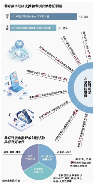 北京市经济和信息化局党组书记杨秀玲表示,之所以数字经济成为北京自贸试验区的三大特征之一,就在于北京是全国数字经济的创新源头、开放源头,也是数字经济发展的领军城市。2019年我国数字经济的增加值占GDP的比重为36.2%。北京市数字经济占全市GDP的比重为52.2%,数字经济支撑和引领发展的特征十分明显。