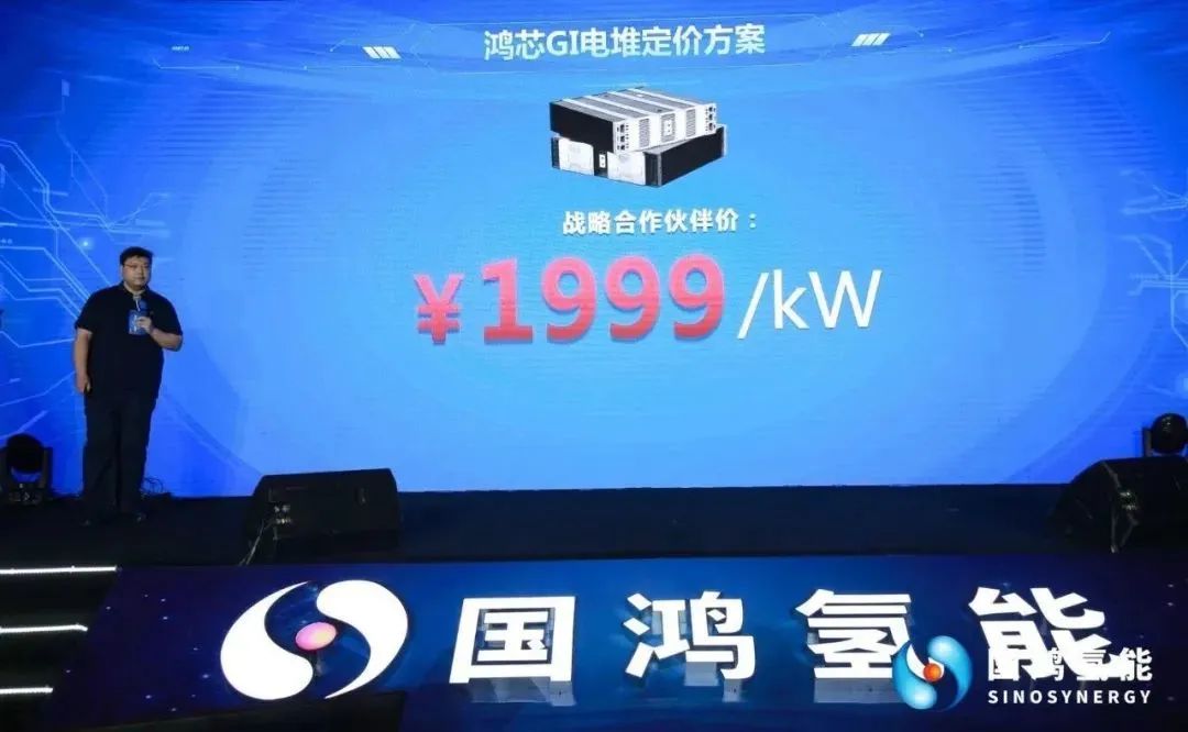 而就在该次发布会上,国鸿氢能总经理陈晓敏表示,“我们本次推出的鸿芯电堆的行业指导价为2999元/kW,这个价格比去年公司的产品售价已经下降了30%-40%,在今年市场中仍然有较强竞争力。但我们本次是带着诚意的,给到战略合作伙伴的售价为1999元/kW。”