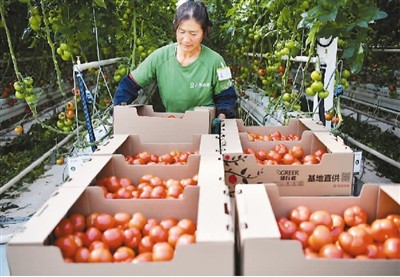 江西省南昌市进贤县罗溪镇一家智慧农业园的大棚内,村民正在打包西红柿以备线上销售。 |