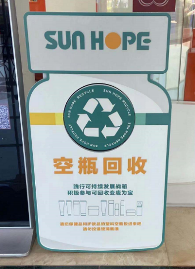 尚赫设立的空瓶回收箱,倡导员工和品牌经营人践行低碳生活
