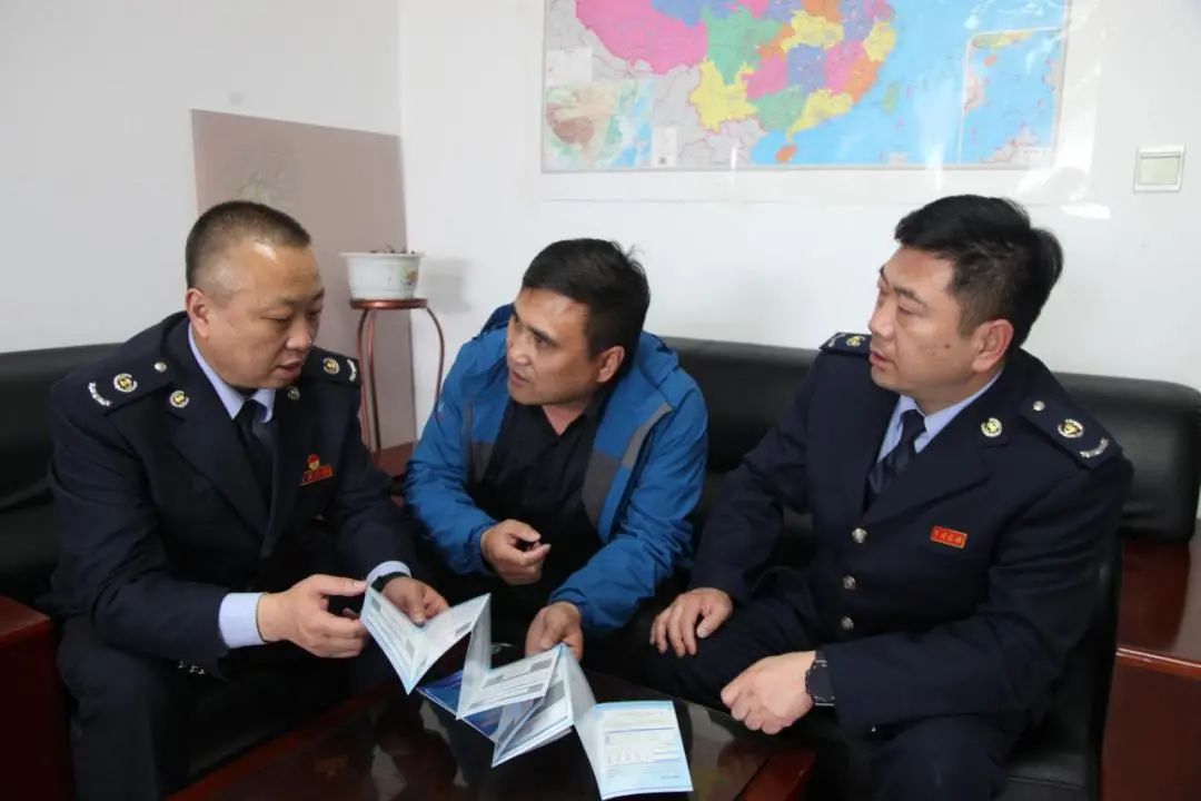 图为税务干部为格尔木阳光华瀚能源有限公司送上税收优惠政策。