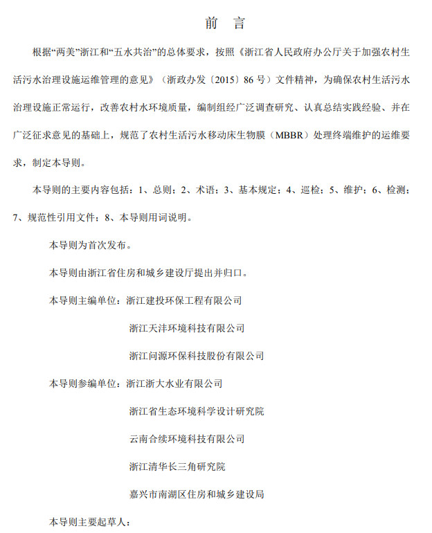 根据浙江省住房和城乡建设厅《关于印发2019年农村生活污水处理设施运维导则编制计划的通知》要求,我厅组织编制了《农村生活污水MBBR处理终端维护导则(征求意见稿)》(详见附件)。现征求各地意见,请于6月8日前将意见建议反馈我厅村镇建设处。