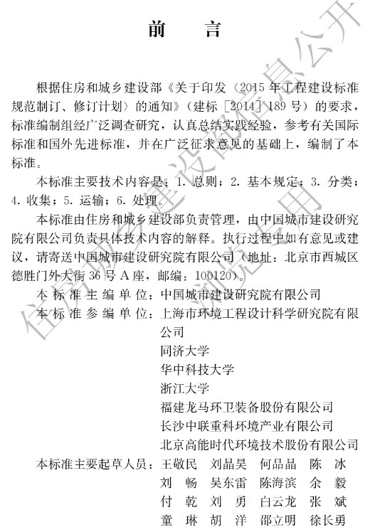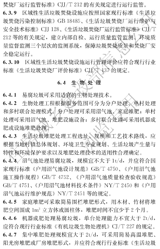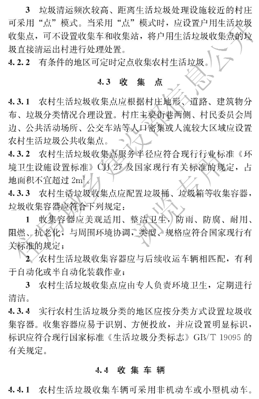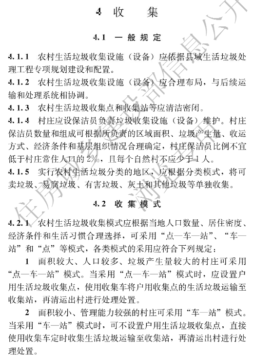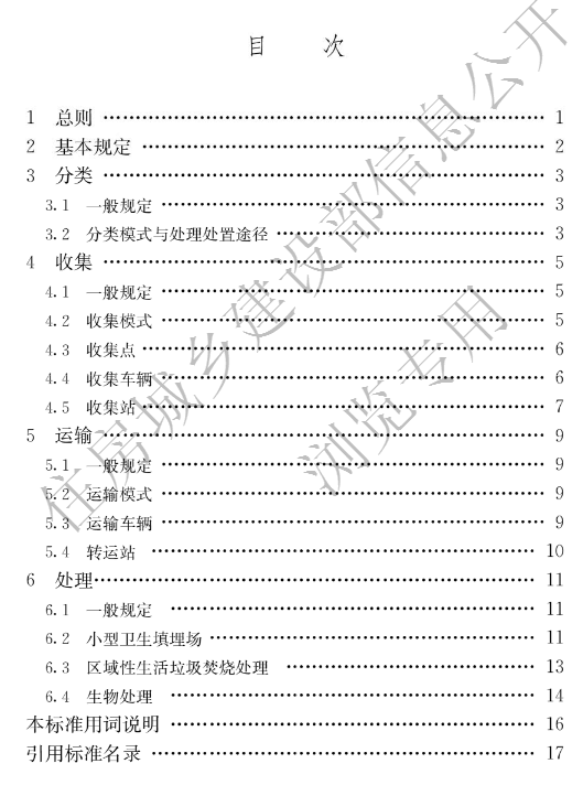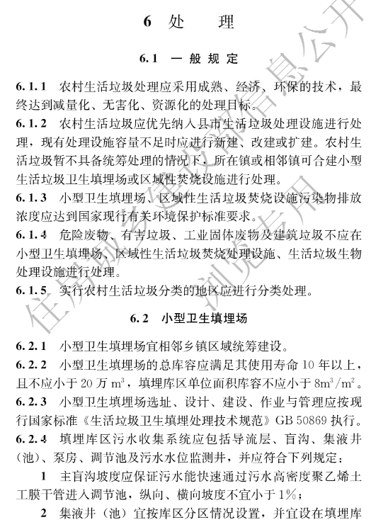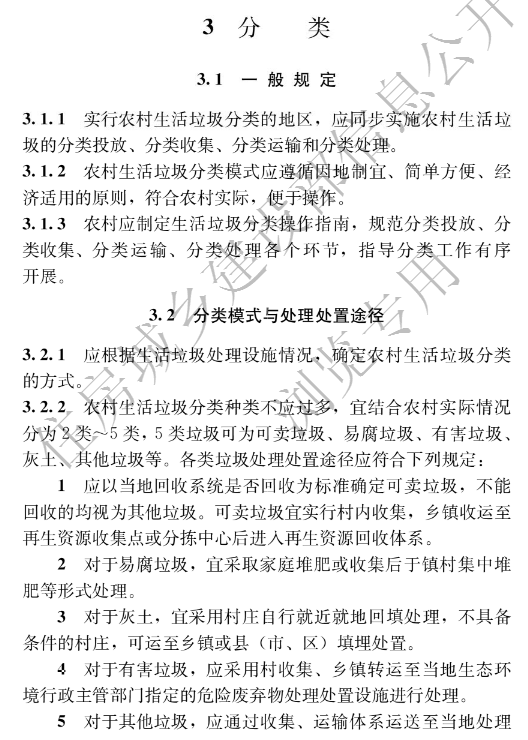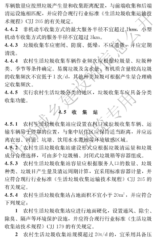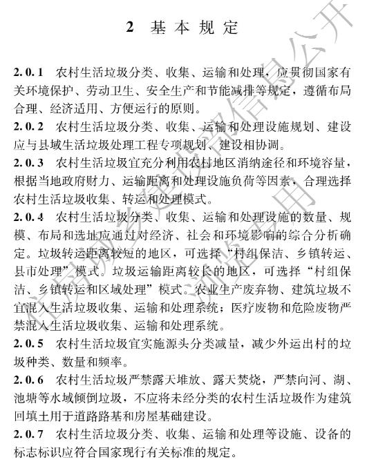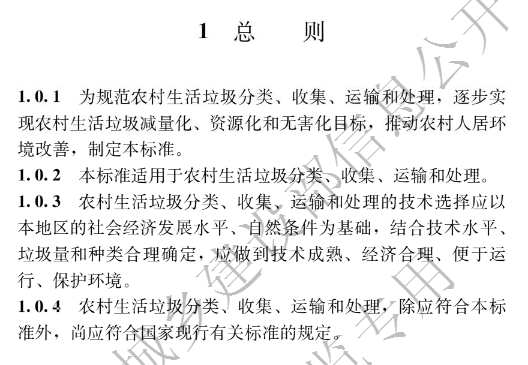 住房和城乡建设部发布国家标准《农村生活垃圾收运和处理技术标准》,为规范农村生活垃圾分类、收集、运输、处理,逐步实现农村生活垃圾减量化、资源化和无害化的目标,推动农村人居环境改善,制定本标准。全文如下: