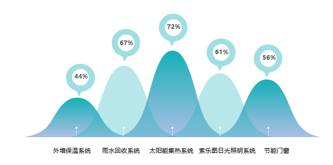 在行业内,中节能实业可谓是屈指可数的在产品中坚守“绿色”极致之道的行业典范。在中节能的产品中,每个项目基本应用了4-10项绿色建筑技术。其中,应用最为广泛的五项技术分别为:太阳能集热系统、雨水回收系统、索乐图日光照明系统、节能门窗和外墙保温系统。