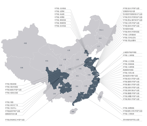 截至2019年底,中节能实业在北京、上海、深圳和杭州、湖州、绍兴、嘉兴、苏州、成都等地开发建设了49个绿色园区,建筑面积近900万平方米,成为国内最具实力的园区型绿色建筑开发运营商之一。