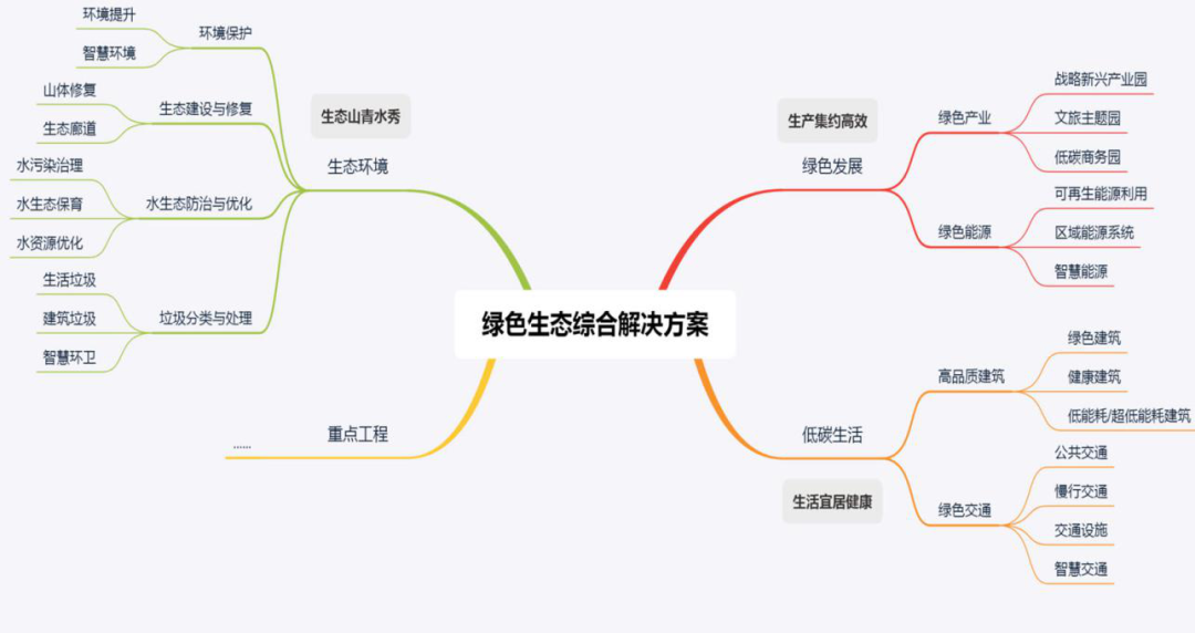在绿色生态城区的开发和运营中,中节能实业坚持“兵团作战”“建船出海”,充分发挥集团内载体作用,同步引入智慧环境监管、垃圾收储运、矿山修复、区域能源供应、照明节能及河道环境生态价值提升等多个子项目。这八大系统内部的解决方案已经明确了实施保障主体,由中节能实业协同集团内部各子公司进行分工实施,高效快捷,责任主体易追踪,分工明确。