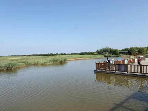 “在造林方面,这里既满足了双城生态屏障区规划的森林覆盖率的要求,优化了局部小气候,又利用多样的树木资源将古海岸廊道呈现出‘春天桃花满园,夏日绿树成荫,秋天色彩斑斓,冬日玉树琼花’四季鲜明的景观特色。而在水域打造方面,这里在建设前大部分为既有鱼塘,我们根据宜水则水原则,将区域内的鱼塘整体改造为景观湖,并与外部河道以及区域内部水系连通,让原来的死水变成流动的活水。”天津经开区西区办公室副主任马剑锋介绍。
