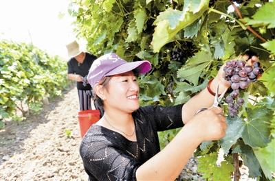 种植户采摘丰收的葡萄。 本报记者 刘乃文摄