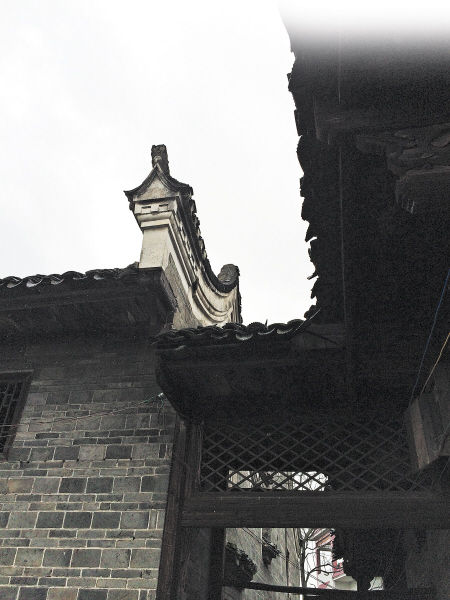 潇潇春雨中,能映出人影的光洁石板路贯穿整个村落,古朴的老宅耸立两旁,一栋连着一栋。古城北侧的数座古宅,大部分墙体已经拆除或坍塌,木门、木雕窗户等内饰已残破不堪。站在高处俯瞰古城村,还冒出不少现代气息的新房,这种“混居”格局,破坏了古城的原始规划和格调,已显露出“古城不古”的尴尬。