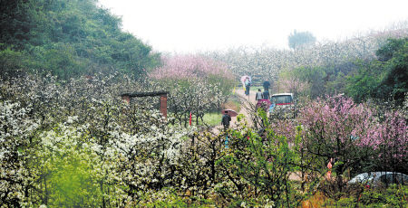 溯源队伍从大洞村口徒步进入梨园,沿途不少村民摆摊出售当地特产——梨肉干、梨花酒等等。还未到达主会场,大片梨花出现在眼前,在高山之下,雪白的梨花显得格外圣洁。记者看到,梨树之间还夹杂着几排桃花,粉红和雪白,在翠绿高山的背景下相映成趣。来源:长沙晚报 特派记者石祯专图片除署名外均为石祯专李锋摄影报道