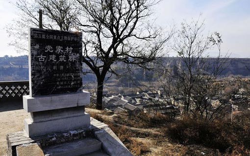 党家村全村多数为党、贾二姓,因党姓居住在早,故称党家(贾)村。党家村位于城东北9公里西庄镇境内,占地16.5公顷。始建于元至顺二年(1331年),地处东西走向的葫芦状沟谷之中,全村330多户,1400多人。明成化年间,党、贾两姓联姻,合伙经商,生意兴隆,成为地方巨商富族,因而明清两代有较大规模兴建。清咸丰元年(1851年)在村东北高地建寨堡,使村寨相通,连为一体。现存四合院达成院123院,321座。党家村民居历史悠久,选址恰当,建筑精良,内涵丰富,有村有寨,群体保护完整,公用设施齐全,避难防御安全。村中有宝塔、祠堂、私塾、节孝碑、看家楼、暗道、哨门城楼、神庙、老池、古井、火药库等公共建筑和独特建筑。村中20多条巷道综合纵横贯通,主次分明,全部条石或卵石墁铺,古色古香,别具一格。