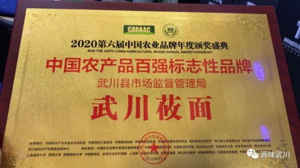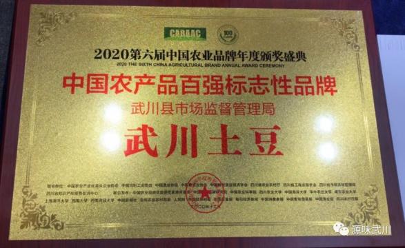 在成都召开的2020第六届中国农业品牌年度颁奖盛典上,“源味武川”旗下子品牌“武川莜面”、“武川土豆”获得中国农产品百强品牌。