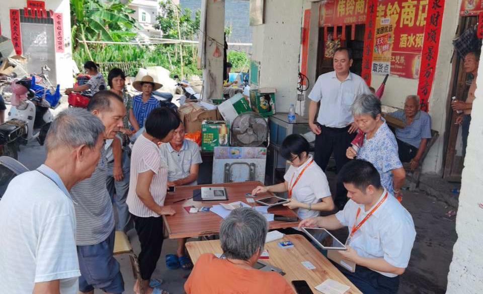 图为金融经理到村委为村民提供金融服务