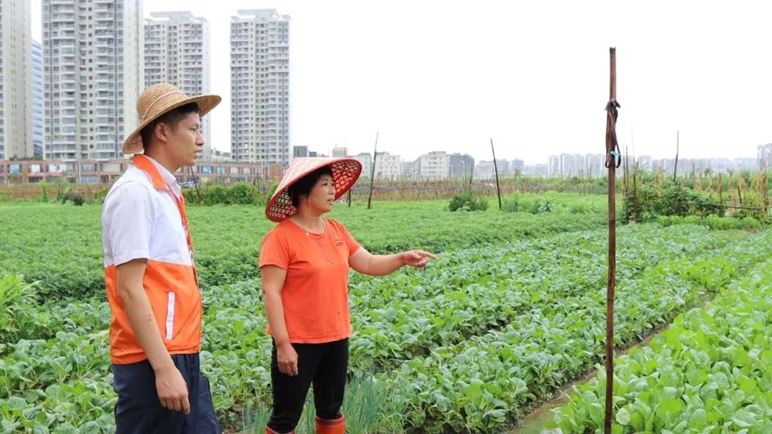图为金融经理到田间地头走访种植户