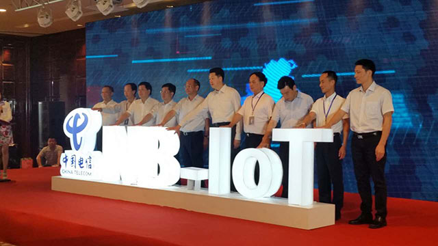 图为中国电信窄带物联网NB-IoT 网络开通仪式现场,右四为我协会会长赵善仁