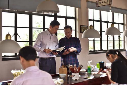 浙江省农信联社辖内南浔农商银行客户经理走进善琏湖笔小镇,为善琏湖笔厂的资深制笔工匠提供金融服务。 张仲恒 摄