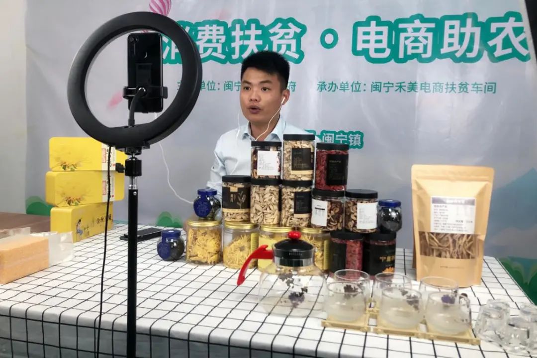 福建挂职干部在宁夏永宁县闽宁镇的扶贫车间作电商直播。张文攀 摄