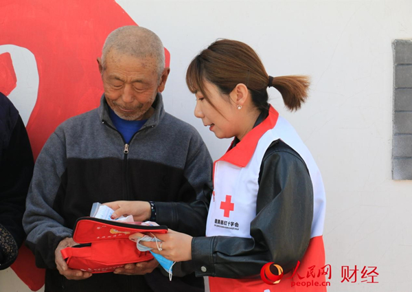 于营村村民正在拆看德清县阜溪街道赠送的急救包。人民网 黄盛摄