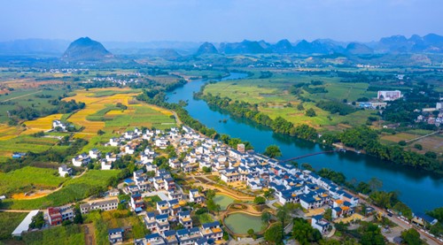 人民网崇左5月3日电 (记者乔雪峰)走进广西崇左市江州区新和镇卜花村,一座座白底青瓦搭配的民居傍水而建,房前屋后种满蔬菜、鲜花,在宽敞整洁的马路上,村民悠闲地散着步,俨然一幅天然山水画。