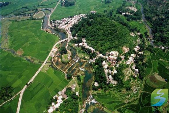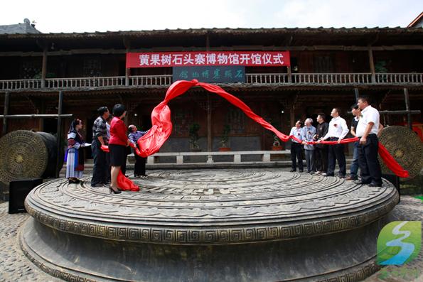 黄果树石头寨属镇宁布依族苗族自治县安庄乡,位于镇宁县城西南12公里处,南距黄果树瀑布约6公里,安庄至落别的公路通过寨侧,蜿蜒的白水河绕寨而过。石头寨是扁担山48个布依寨的一个,依山傍水,四周群山秀丽,寨前田连阡陌,寨后绿树成荫。