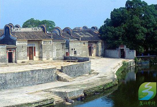 该村民居、祠堂、家庙、第府、文塔、晒坪、广场、池塘兼备,聚族而居,布局协调,风格统一。建筑群均采用硬山顶锅耳式封火山墙,内部布局采用广东民居典型的“三间两廊”式。