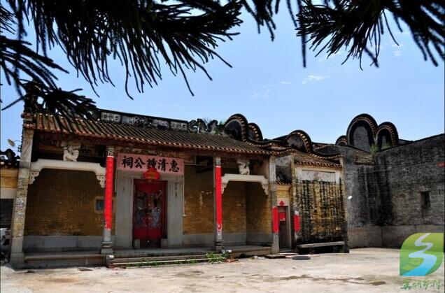 该村是一个祠堂,家庙兼备,聚族而居的建筑群,内部布局采用广东民居典型的“三间二廊”式。前临半庙方扩,扩基砌以石坎,突出部份状如壶嘴;扩边有一笔形古塔——文塔;塔下有两方石;大者高三尺许,如砚,小者方块状如印,组成一个明显的“文房四宝”齐全的人文景观,寄希望后代“读书做宫”之意。