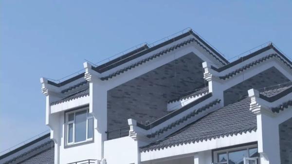 “除了新建的一栋栋小洋房,2017年村湾还对121栋农房进行整体升级改造,白墙黛瓦,翘屋檐鎏金窗,焕然一新。此外,还有鲜花、绿树点缀其间,道路也进行了硬化改造,还安装了路灯杆,村湾环境得到极大改善。”