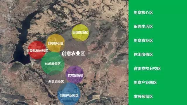 项目包括创意核心区、创意农业区、休闲度假区、省委党校分校片区、加工仓储物流服务区等五大功能区。