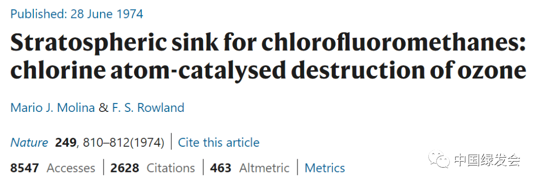 臭氧层是抵御太阳紫外线的重要屏障,是地球生命的保护伞。若是任由臭氧层被破坏,那么过量的太阳紫外线将会直抵地表,伤害地球上绝大部分的生物,包括人类。1974年6月28日,还在做博士后的马里奥·莫利纳和他的导师弗兰克·舍伍德·罗兰在Nature上发表论文,证实氯氟甲烷等人类正在大量使用的氯氟烃(CFC)正在破坏臭氧层。1995年,马里奥·莫利纳、弗兰克·舍伍德·罗兰和保罗·克鲁岑也因这方面的成果共同获得了诺贝尔化学奖。只是当是时,这项开创性的研究遭到了化学工业界的猛烈抨击,但它使公众对氯氟烃的有害影响有了认识,此后马里奥·莫利纳继续努力,并直接导致了《蒙特利尔议定书》的产生。