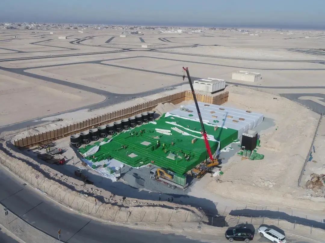 穆特拉项目“雨水收集系统”建设“目前正在安装的模块是中国制造,是科威特首次引进中国制造的雨水模块,其性价比高、稳定性好、过滤性强,得到了科威特政府的点赞。”项目经理介绍说,项目部雨水收集系统工程技术青年团队将国内“海绵城市”施工经验带出国门,与“一带一路”沿线国家共建、共享中国技术,共同为当地生态环保作出努力。
