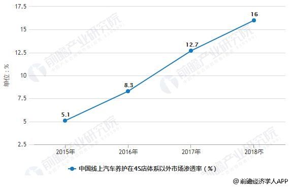 在过去的几年中,电商渠道对中国汽车后市场的渗透率逐渐增加。以汽车养护行业为例,2018年线上汽车养护在4S店体系以外的市场渗透率已经达到16%,整体而言,在整个汽车后市场规模不断扩大,市场渗透率不断提高的背景下,中国线上汽车养护景气度不断上升。