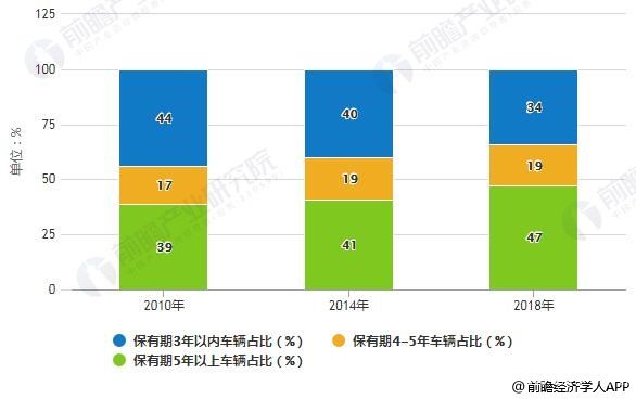 2018年美国平均车龄超过10年,而中国平均车龄仅有4.9年,但保有期5年以上的车辆占比较2010年增加8%,平均车龄快速提升。
