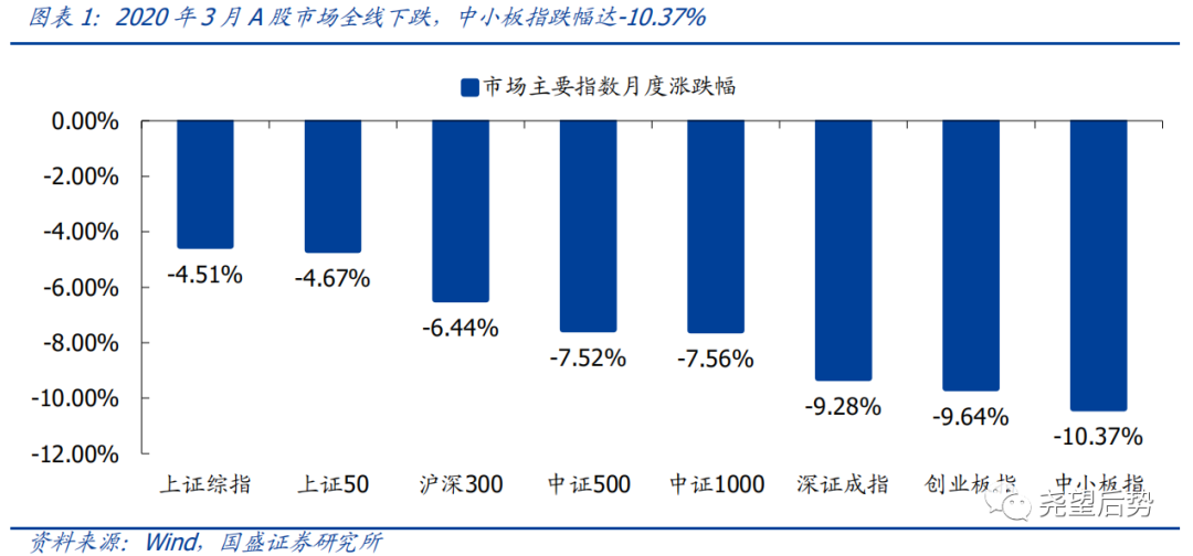 A股受海外市场影响,同样出现回调;但整体来看,A股在全球市场中下跌相对更少,韧性较强;3月,上证综指和上证50跌幅较小,分别为-4.51%和-4.67%;中小板指和创业板指跌幅较大,分别达-10.37%和-9.64%。