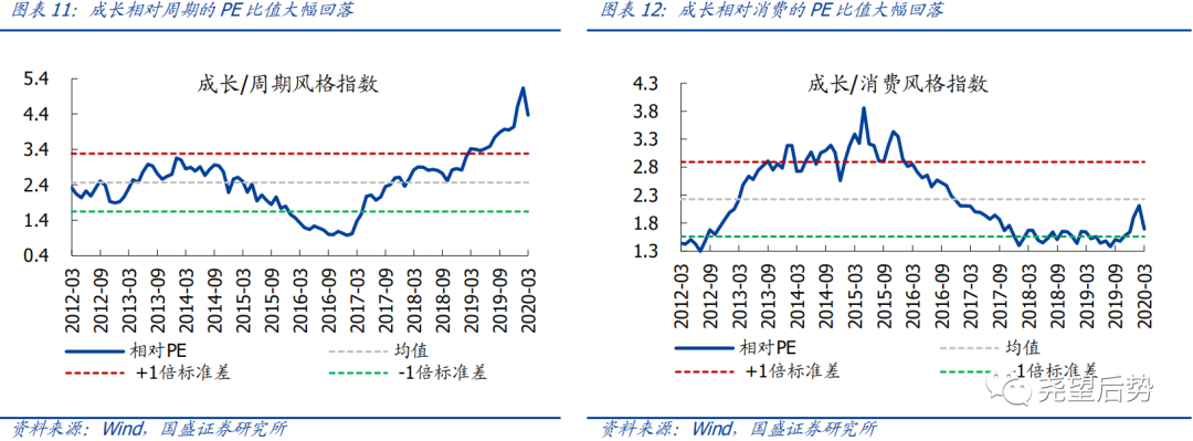 成长相对消费的估值大幅回落