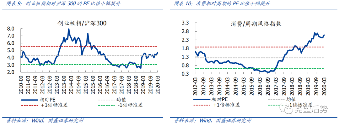 2020年3月,创业板指相对沪深300的PE比值为4.70,较上月小幅提升,基本维持在2010年6月至今以来的均值水平(相对PE均值为4.30)。