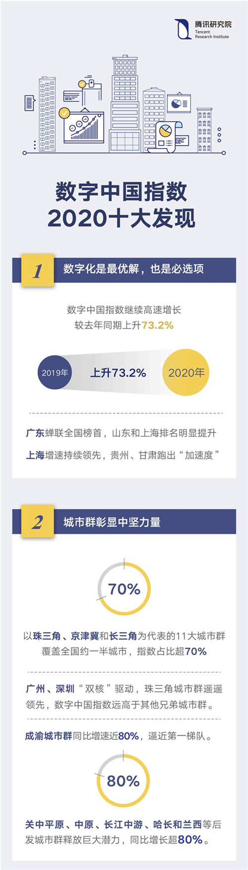 日前,在2020腾讯全球数字生态大会上,腾讯研究院联合腾讯云共同发布了《2020数字中国指数报告》。