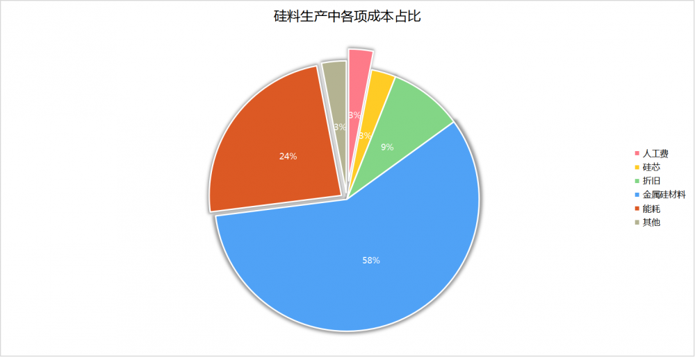 对于光伏产业来说,可谓重大政策利好。国际能源网(微信公众号:inencom)了解到:“生产1kg高纯晶硅需要耗电50kwh左右,硅料拉棒、切片环节需要20-30kwh,制造电池、光伏玻璃、生产铝合金主辅材等环节共计耗能20kwh左右。整体上看,生产1kg高纯晶硅并将其制成光伏系统大约耗电在100kwh。”