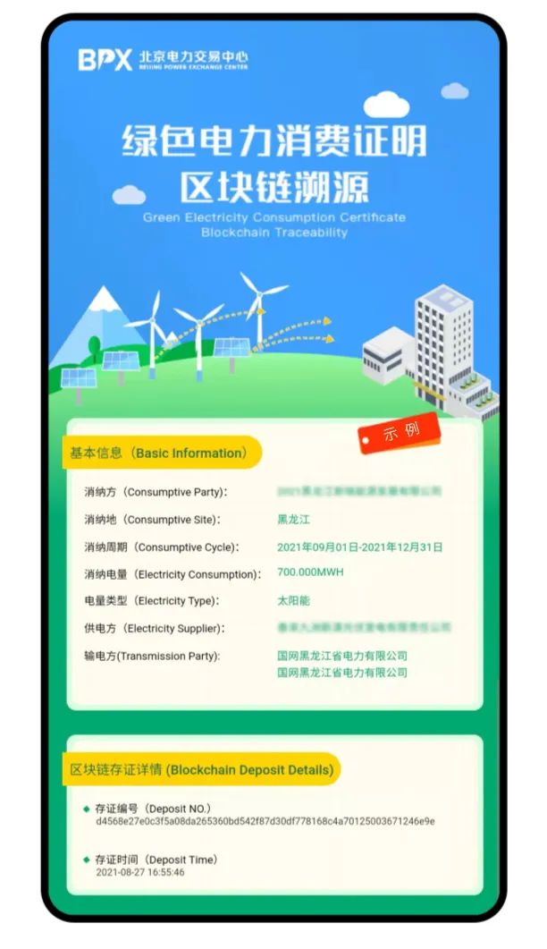由交易中心依托区块链技术对绿色电力交易全环节数据进行记录,确保了绿电生产、交易和消费的全环节可溯源,从经济关系、发用电行为上保证了绿电生产与消费的匹配性。