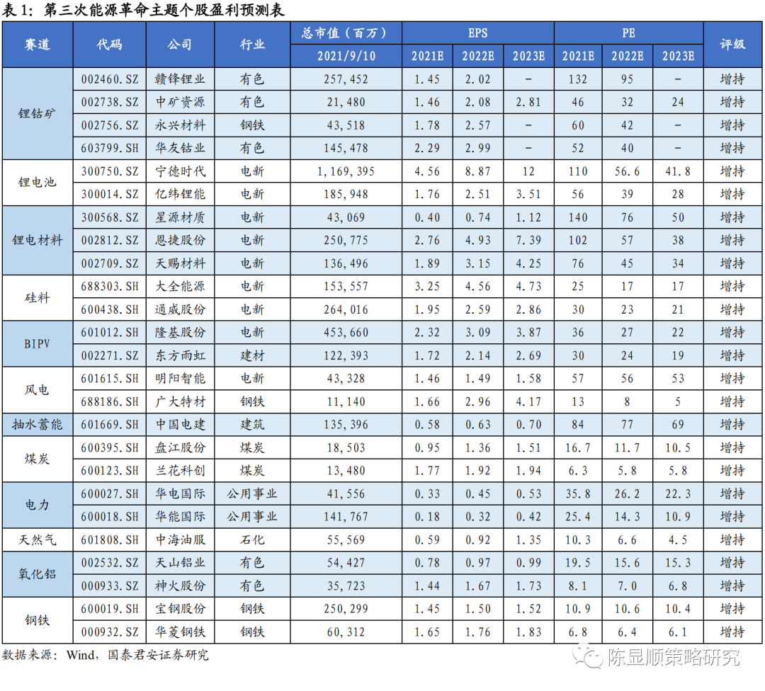 3. 第三次能源革命主题个股组合