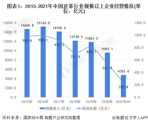 2021年,皮革市场逐渐从疫情中恢复。2021年上半年我国皮革行业规模以上企业完成销售收入4781.4亿元,同比增长11.03%;利润总额232.8亿元,同比增长10.87%。