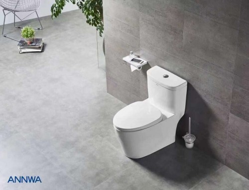 安华卫浴坐便器aB1348拥有国家一级水效认证,具有节水坐便器专利发明(专利号:ZL 2018 2 1347316.8),其双重冲水结构,双主冲水孔加若干副冲水孔同时出水,提供不同方位的洗刷水流,同时胆包内有导流水凹面结构,使漩涡水流更集中,洗刷更干净。