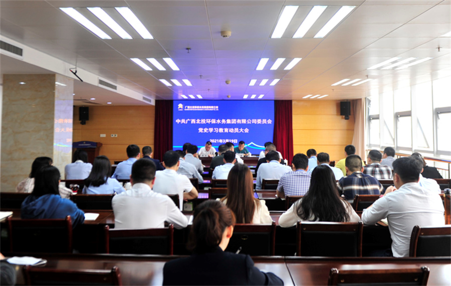 北投环保水务集团召开党史学习教育动员大会现场。青秀环水公司 供图