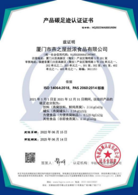 紧跟双碳战略,燕之屋目前已经委托厦门市翔安生态环境局进行关于废气、废水、噪声、固体废物的环境评测评估的方式,确定项目建设与生产经营在环境影响方面的可行性,努力确保工厂在生产经营环节的环保与安全。燕之屋将坚定不移走生态优先、绿色发展道路,致力于打造燕窝行业生态环保标杆企业,并于今年6月荣获“产品碳足迹认证证书”与“温室气体核查认证证书”,树立了行业节能减排典范。