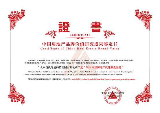 2020年9月10日,由中国房地产TOP10研究组主办,中指控股(CIH)、中指研究院承办的“2020中国房地产品牌价值研究成果发布会暨第十七届中国房地产品牌发展高峰论坛”在北京隆重举行。当代绿建凭借绿色科技价值及服务优势,荣膺“2020中国房地产代建领先品牌”奖项。